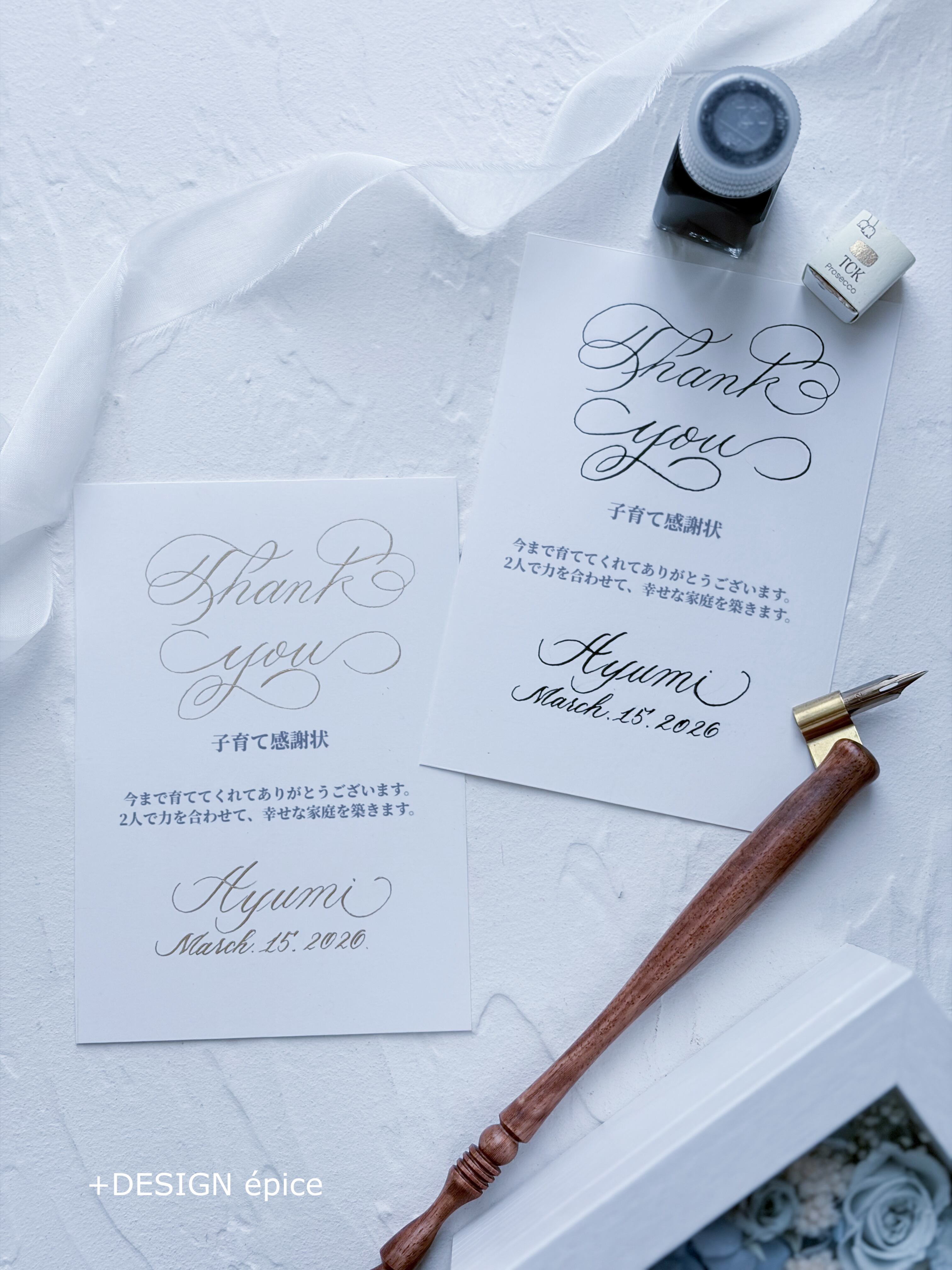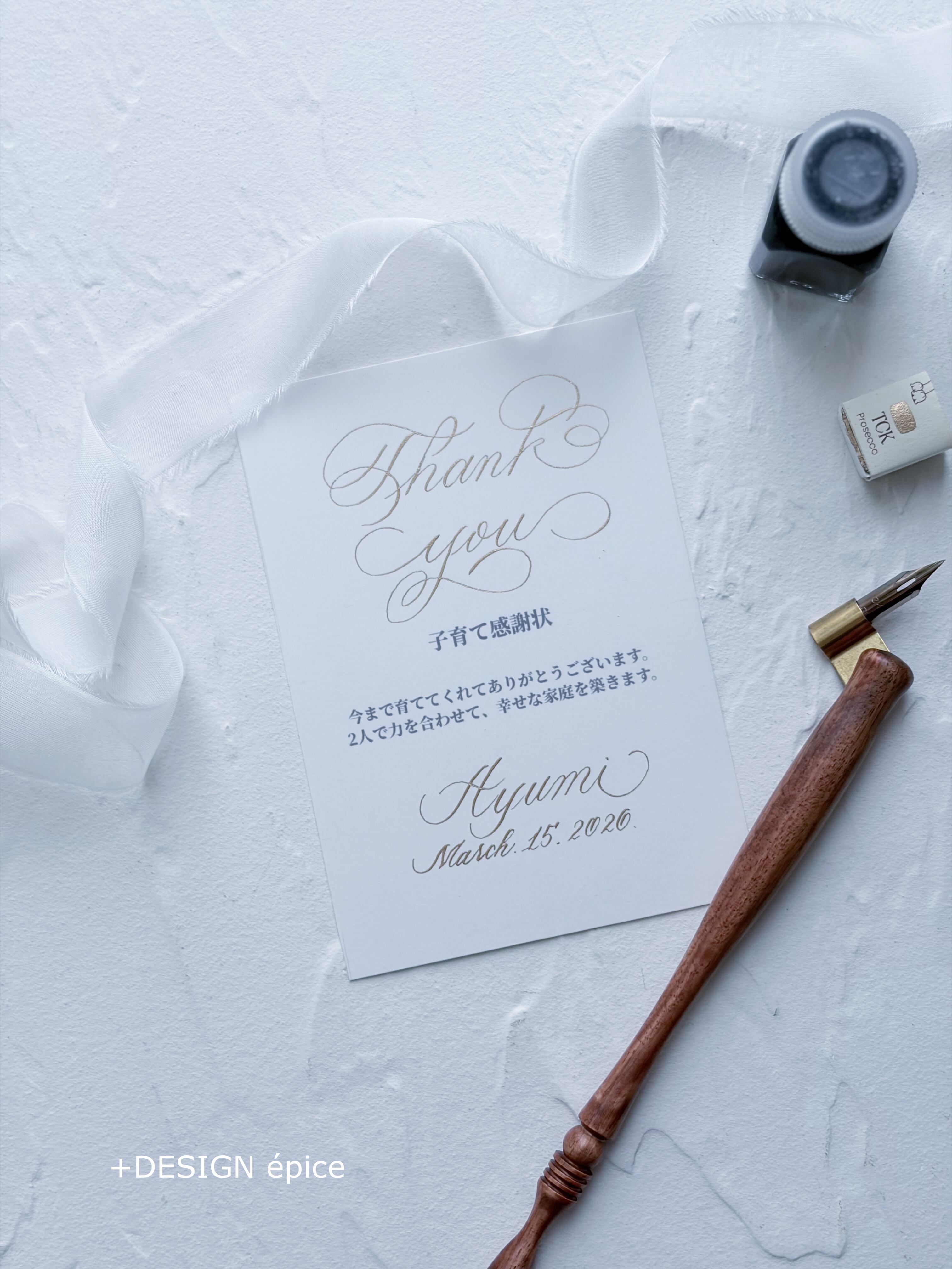 ありがとうのthank youとお名前は手書きのカリグラフィー文字