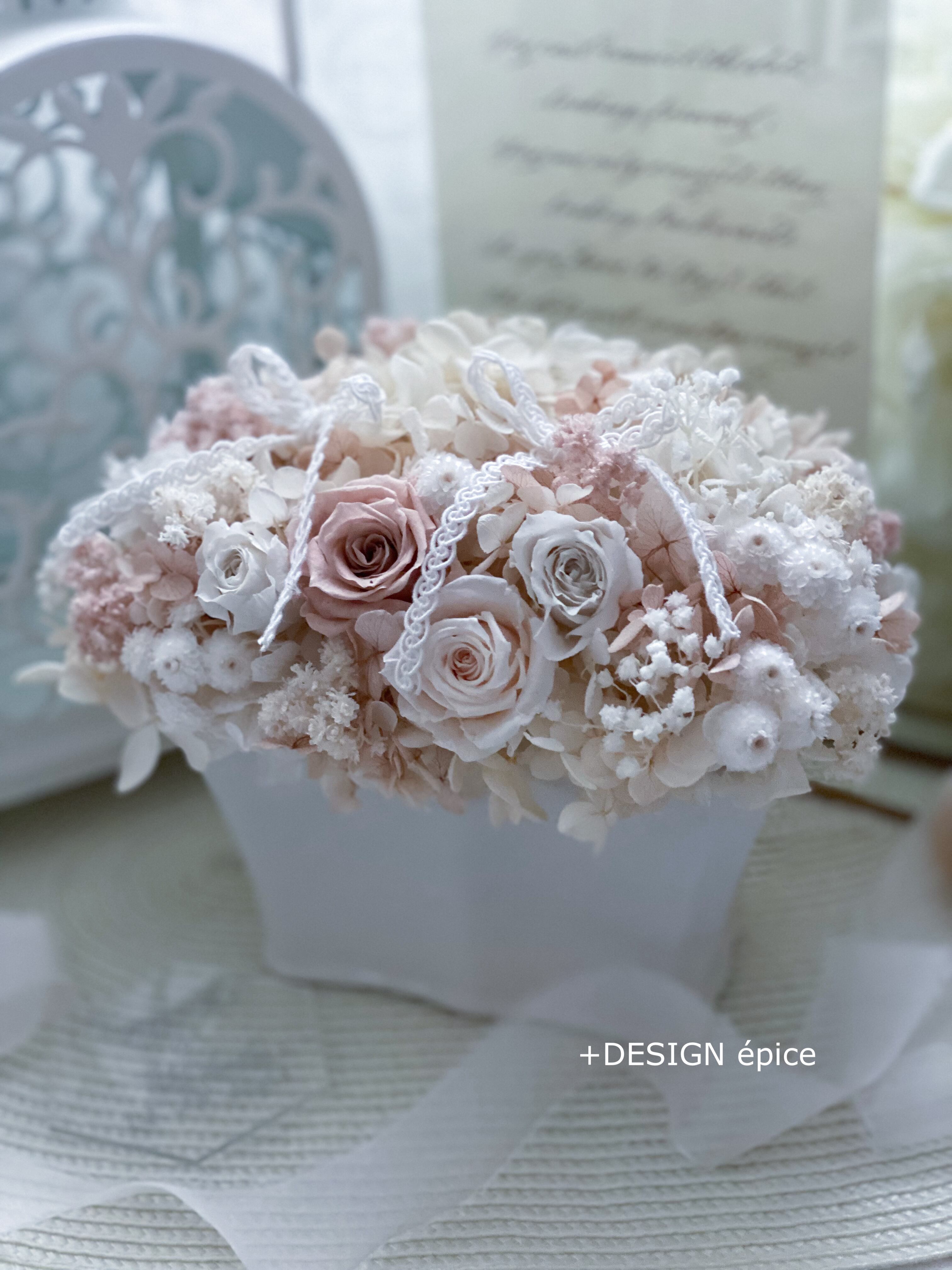 すべてプリザーブドフラワーを使用しておりますので、挙式後は結婚式のお写真とともにご新居に飾っていただけます。