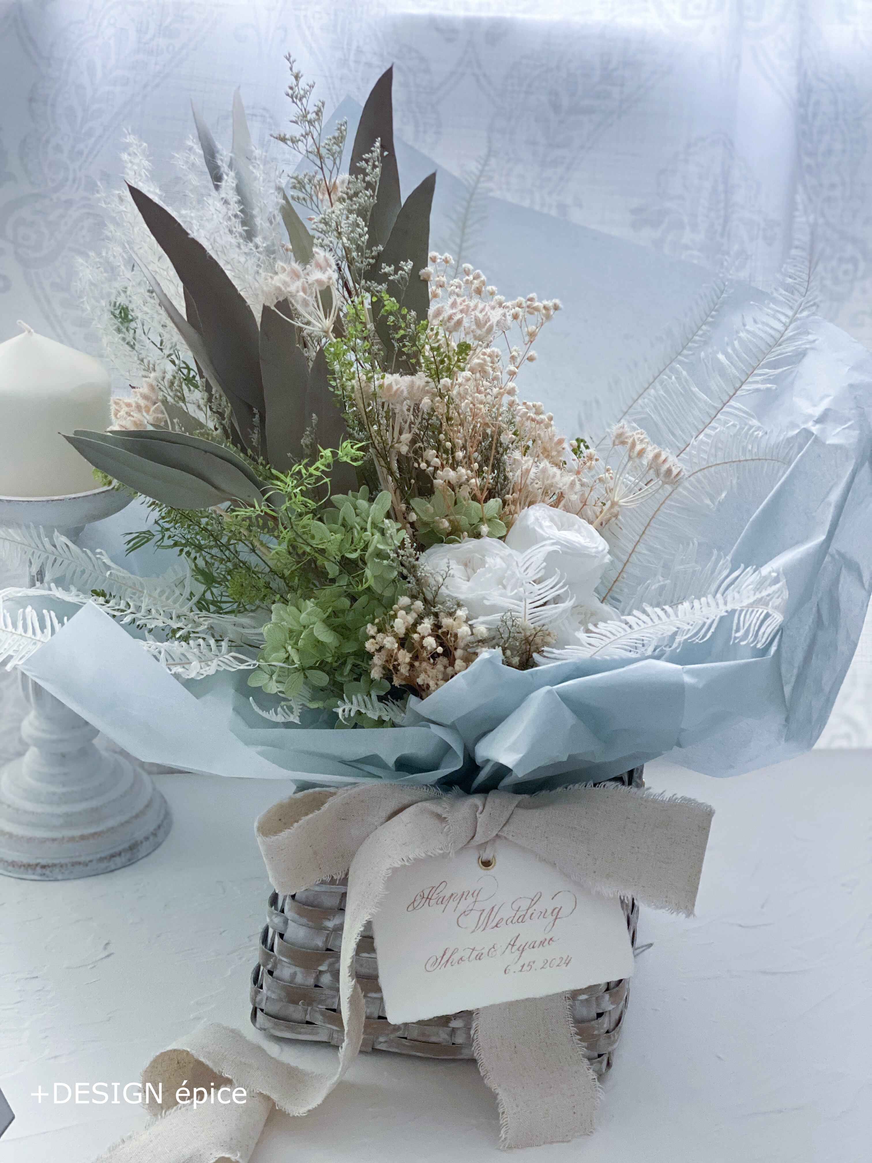 +DESIGN épice プラスデザインエピスの癒しの色合わせで完全オーダーメイドで結婚式のご両親様への贈呈用パニエアレンジを製作いたします。