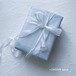 オプションのラッピングは優しいペールブルーの薄紙にトレーシングペーパー。ホワイトのインクでカリグラフィー文字を書いたペーパーを挟み、サテンリボンもしくはシルクリボンをご選択